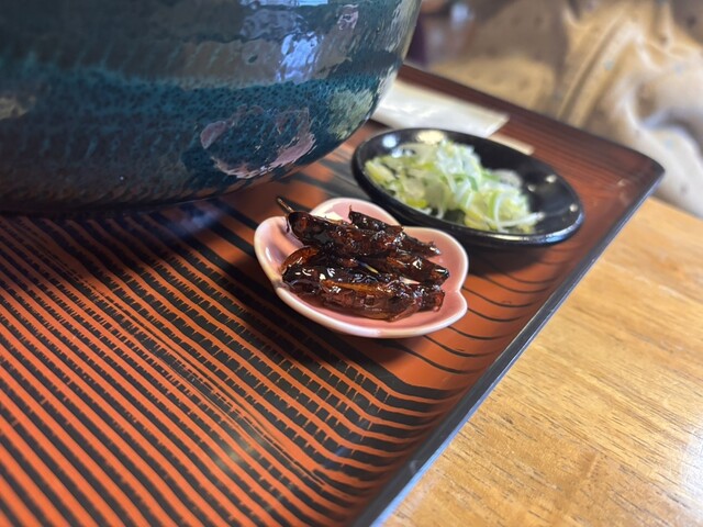日帰り温泉の前に、昼食を食べようと立ち寄りました。ヤマメの唐揚げが丸ごと1尾のっている暖かいお蕎麦をいただきました。付け合わせのイナゴの佃煮が苦手だと言ったら、伽羅蕗に変更してもらえました。静かに降る雪の中、風情あるお店で美味しくいただきました。