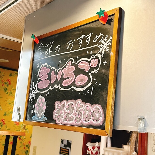 メニューに迷ったのでオススメの生イチゴかき氷にしました。