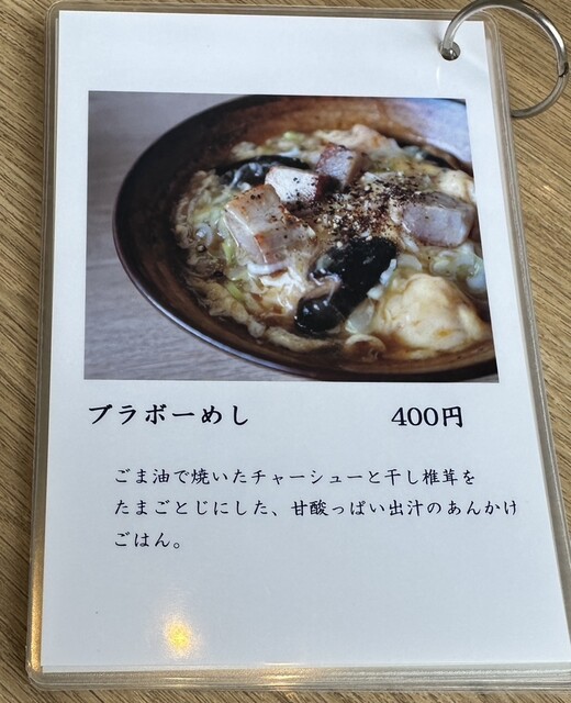 ブラボー飯は、サイドに一品と思い注文しました。出汁とすっぱさが売りのようです。単品でこれだけ食べたらもっと楽しめたかと思いますが、ラーメンで十分塩分と濃さを味わえたので、ラーメンメインなら次からはなくていいかなと思いました!