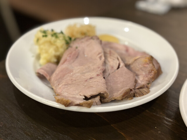 看板メニューの香ばしくしっっとり焼かれたローストポークははずせません✨ディジョンマスタード、ザワークラウトといただくことでさっぱりいただけました。