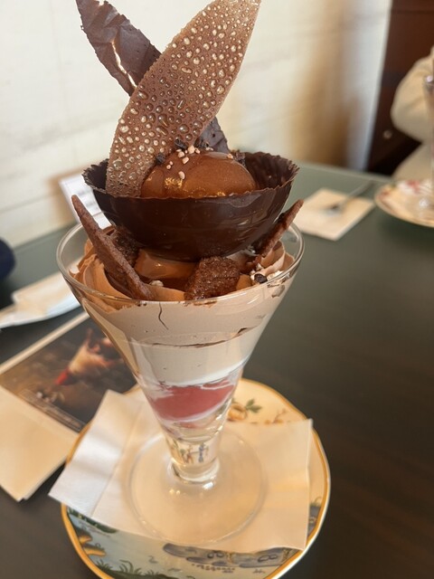 普通にオーダーすると2,3千円くらいはするパフェらしく、何階層にも味が変化する作りになっており、飽きさせない構成で、かつ、全体的にビターな味わいで美味しかったです。