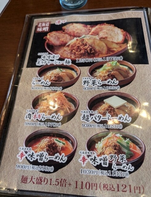 味噌ラーメンの種類が豊富で、どの味にするか迷ってしまいます。今日はコッテリと食べたいので北海道味噌ラーメンに決まりです。