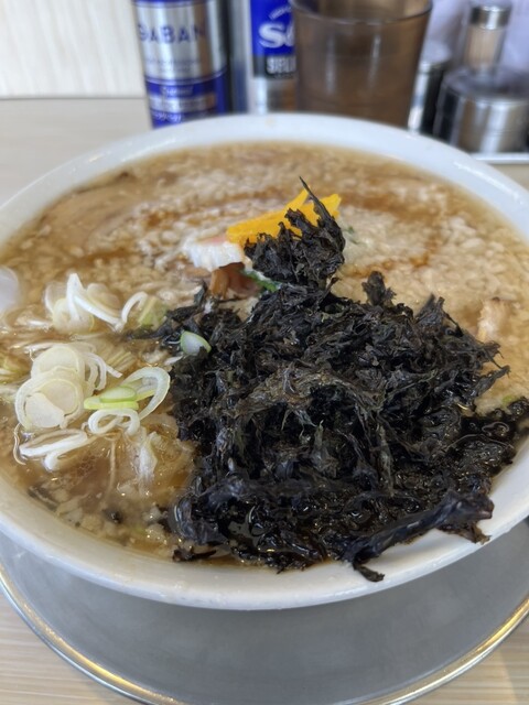 香ばしく炒めたメンマ、油を全開に吸い込んだ岩のり、そして油を絡めて来る太麺。