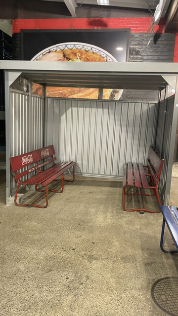 外にベンチがあり喫煙所のようになっていました。