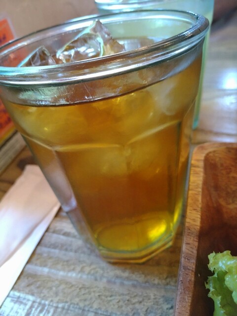 タイ風のミルクティーアイス、エビ春巻きをオーダー。