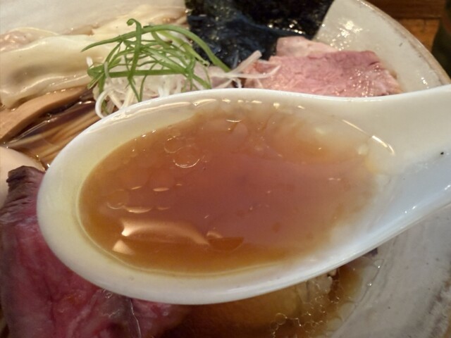 さぁ先ずはスープから。醤油がキリッと立つ動物系の滋味深いスープ。無化調なので完飲しても罪悪感が無い。