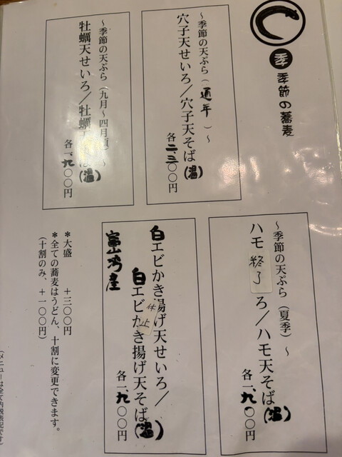 日替わりの牡蠣天蕎麦は残念ながら売り切れでした。