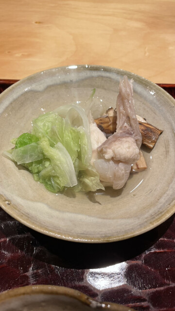 ふぐの出汁がしっかりと味わえるコンソメスープから始まる。