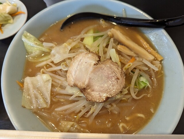 味噌ラーメンですがスープはまろやかな優しい風味(某北陸チェーン店のような味に似ているが違いははっきりしているw)麺は中太縮れ麺で優しい味噌スープと絡んでます!胡椒で少し風味変えながらもありです!