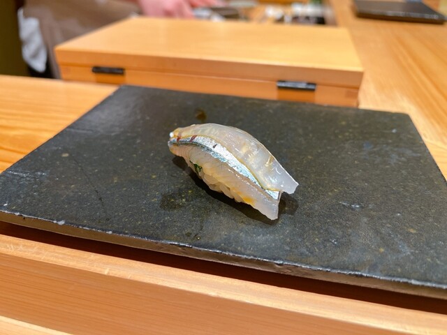 鮨屋では珍しいネタである鱒、とても旨みが乗っており、鱒好きには堪らないだろう