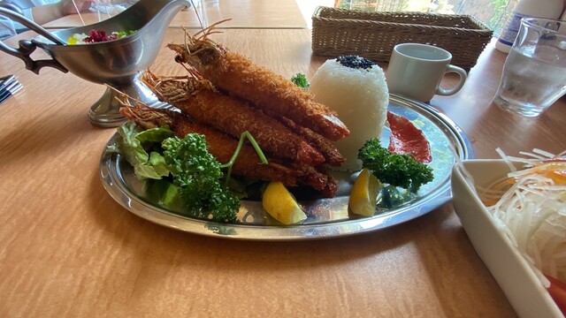 ぶりぶり大ぶりの海老フライは食べ応えもあり、6匹もあると大変満足いたしました。