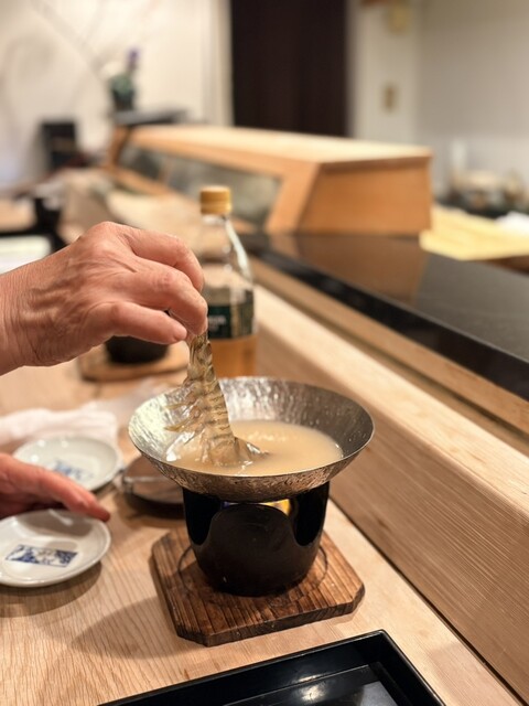 濃厚なミルクのような甘みと塩の香りが融合。季節を感じさせる深い一貫。