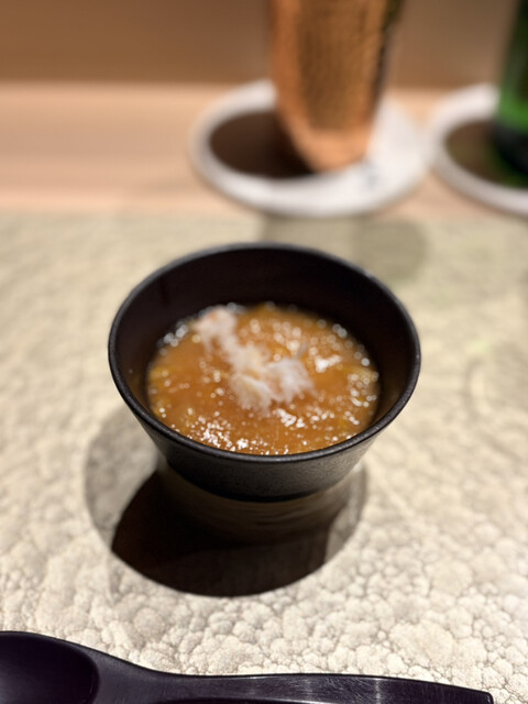料理は和洋を問わない、独創的な一手間を加えられており、鮨の枠に収まらない逸品が提供される。それでいて、温度・香気・食感の三位一体が見事に調和している。