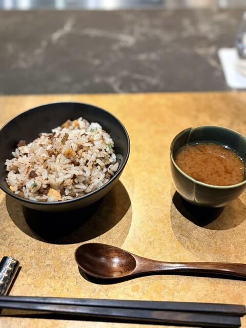 鉄板焼の締めを飾るに相応しい一品。一粒一粒が脂と醤油を纏い、パラリと解ける食感が心地よい。お焦げの香ばしさが堪らない。