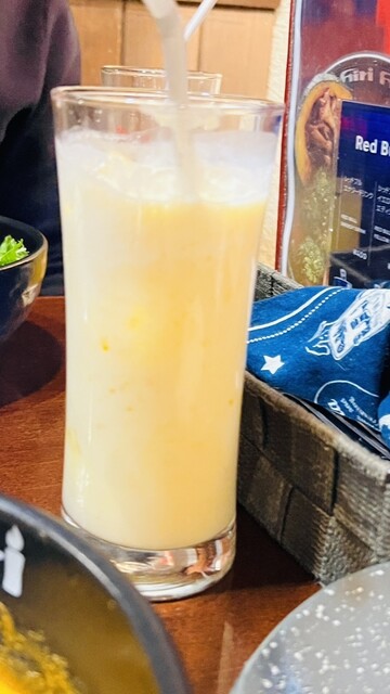 マンゴーラッシーも頼みましたが、想像していたヨーグルト感のあるクリーミーな味ではなく、スムージーのような感じでした。次回は頼まないかもしれません。