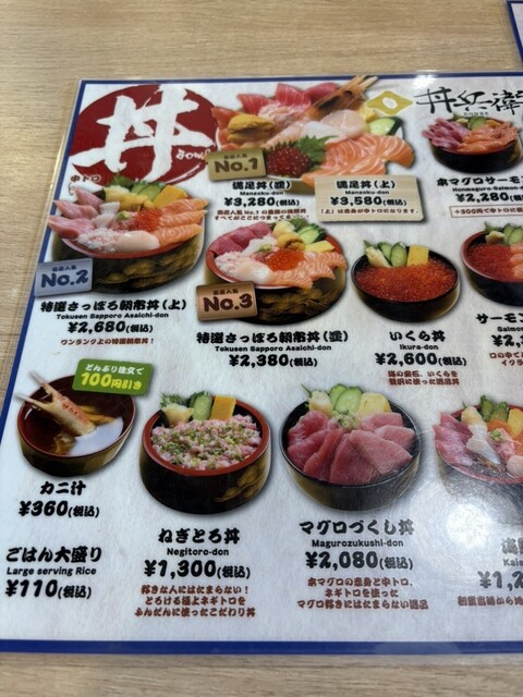 人気No.1は量がすごそう、No.2は中トロだと朝から少しこいかな…と思いNo.3の朝市丼(並)をチョイス