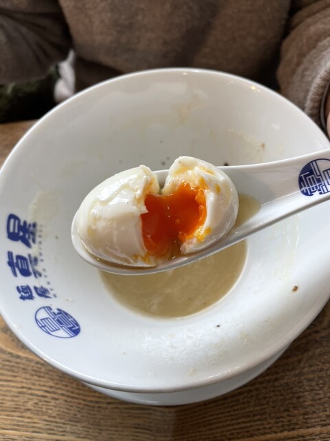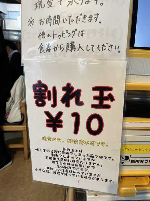 割れ卵は味玉の調理中に傷がついても高級奥久慈卵に変わりはない!ということで味玉ではありませんがゆで卵¥10とは破格のトッピング!