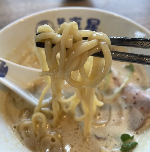 中細麺もまろやかなスープに良く合って美味しい◎