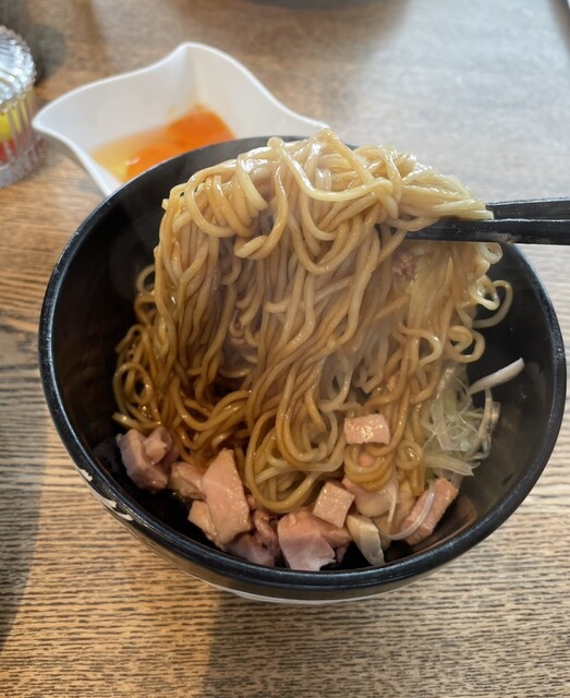 最後は鶏白湯スープを入れて濃いめのタレに生卵とコレは強力に美味しい〆のラーメン!