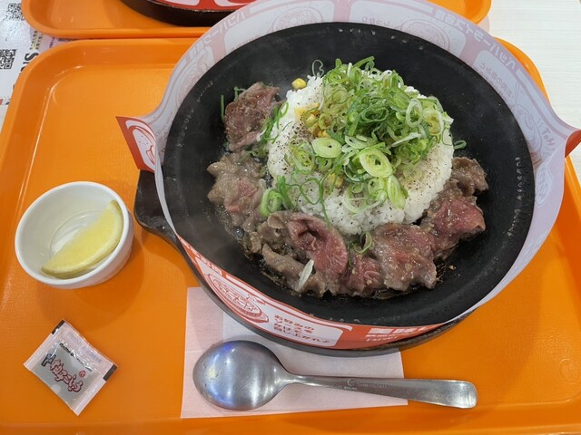 ペッパーランチはあちこちの街で何度となく利用してきましたが店頭の看板を見てネギ塩牛タンのペッパーライスを注文