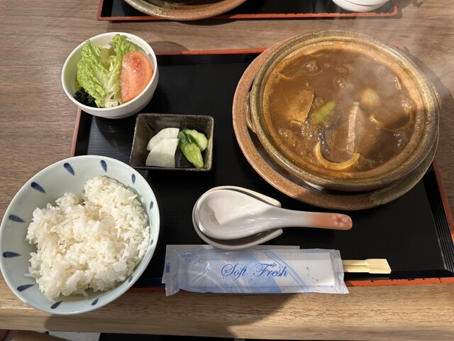 小ぶりの土鍋でグツグツと煮立った状態で提供されます。最後まで冷めずに、熱々の状態でいただけるのが醍醐味です。写真は定番のバラ肉ビーフシチューになります。