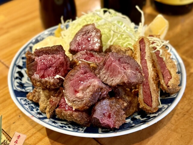 「馬肉のレア唐揚げ」:ビジュから最高の一品♪衣に良く味が付いており、ひと噛みすると中はしっとりレア。是非ココに来たら食べてもらいたい逸品(⁎⁍̴̛ᴗ⁍̴̛⁎)