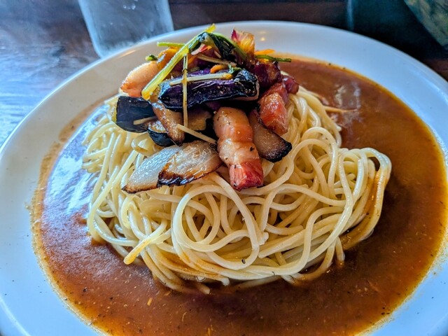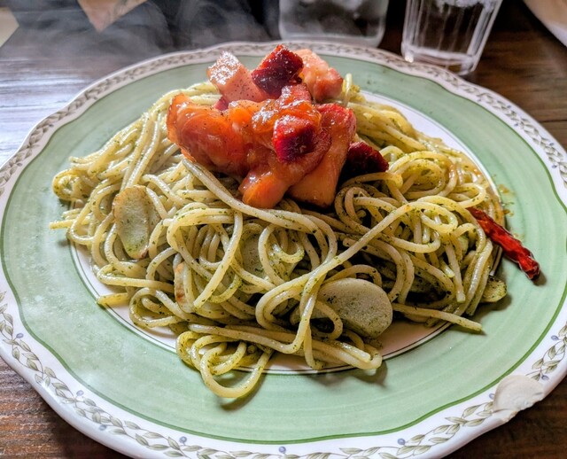 定番のフレッシュバジル風味のペペロンチーノ 照り焼きベーコンにしました(^o^)