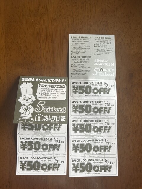 そして次回使える50円クーポン券5枚綴りを1人1枚もらいました。また来なきゃ☆ごちそうさま☆