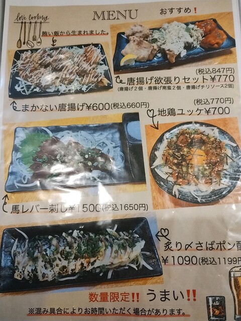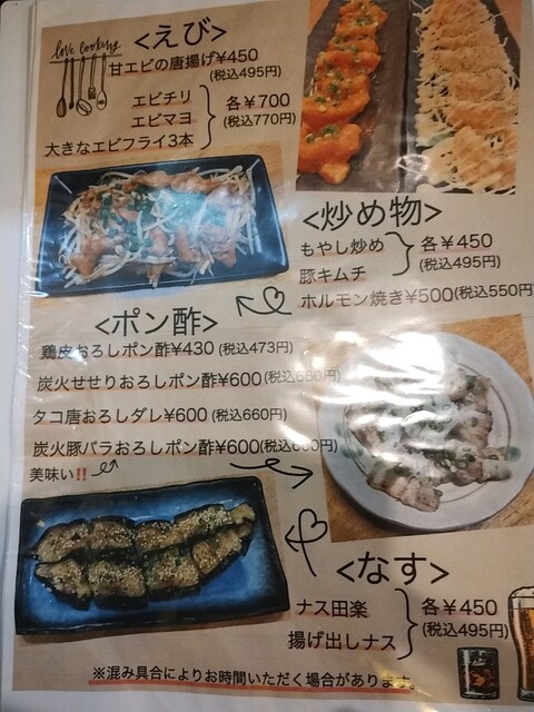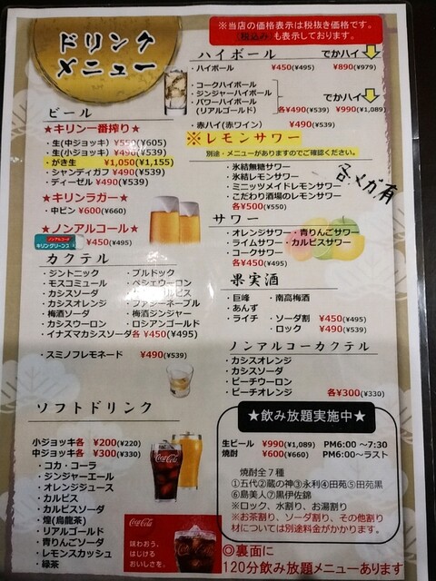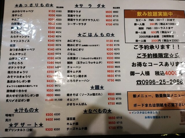 早速焼酎飲み放題を店員さんに注文し、残りはメニュー表をゆっくり眺めながら注文をメモに書いて渡しました。