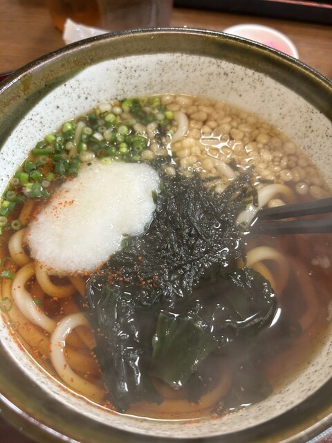 出汁の色は結構濃くて、しょっぱそうな色なのに 凄くあっさりとしてて食べやすい濃さでした 麺が短めで、すっと啜れる長さでしたね