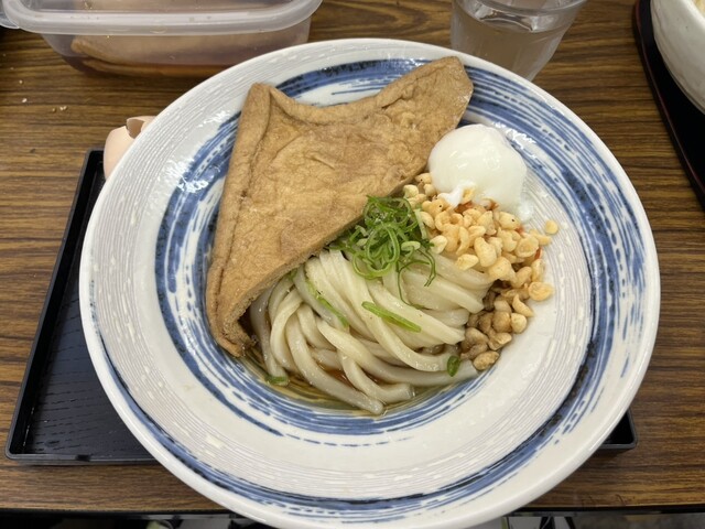 味付けあげは麺量に対して多すぎるくらいの大きめサイズ。甘く味付けられていて、うどんによく合います。