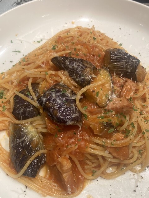 パスタは茄子とベーコンのアマトリチャーナをチョイス。