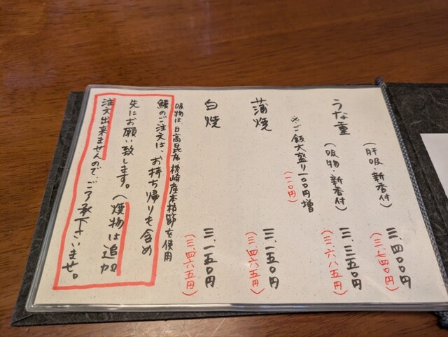 鰻重は一種類、肝吸いか、普通の吸い物が選べましたが50円ほどの差なので、肝吸いの方を頼みました。