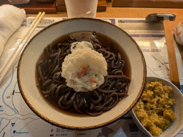 金曜日、午後から休みでしたので、予約して伺いました。しん・おといねっぷそばの、極上てんぷらそば(1600円)を注文、国稀の冷やをいただきました。突き出しのおからと国稀よく合い、お酒が進みます。温かいおといねっぷそばには、駅蕎麦のようなかき揚げとネギがのっており、濃いめの出汁と黒い音威子府蕎麦美味しいです。最後に蕎麦湯が出され、温かいそばで蕎麦湯初めてでしたが、なかなか良かったです。