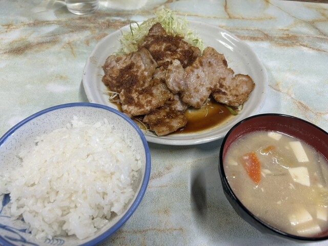 歯で切れる柔らかい豚ロース肉に瑞々しいというか爽やかな生姜の風味のソースと絡み何とも言えない幸せを感じます。ビールは中瓶700円、大瓶800円ですが漬け物の盛り合わせが付いてくるのでお得感があります。優しい味噌汁とおいしいごはん。