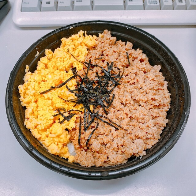 オフィスでランチにやきとり丼を、夕食にそぼろ丼をいただき、どちらも冷めていましたが、美味しさは変わりません。流石です。