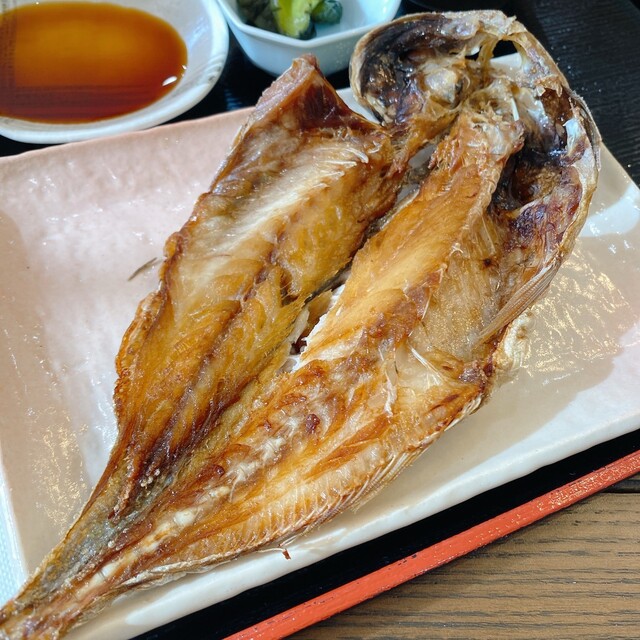 そしておススメ料理はこの「大あじひもの定食」。絶妙な塩加減の肉厚なアジがほんとおいしい♫ アジは相模湾の名産ですし、やっぱり伊東は干物が美味しいですね。