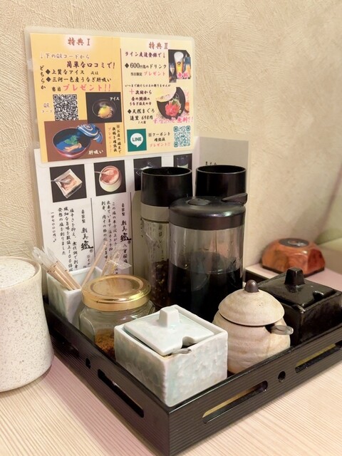 お塩が4種類と説明書きもテーブルに。