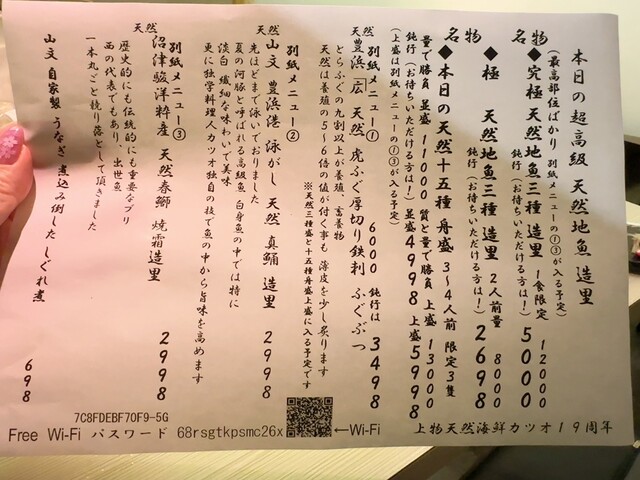 《当店では一人三万円以上の高級料理店でしか味わえない階級の魚介を、お値打ちにお楽しみいただけます。