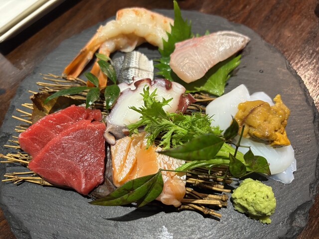 刺し盛りはマグロの赤身と海老が美味しかったです