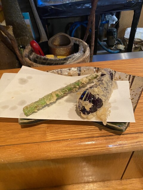 野菜の天ぷらが出た頃には日本酒も少なくなりご飯と赤味噌の味噌汁を頂く。