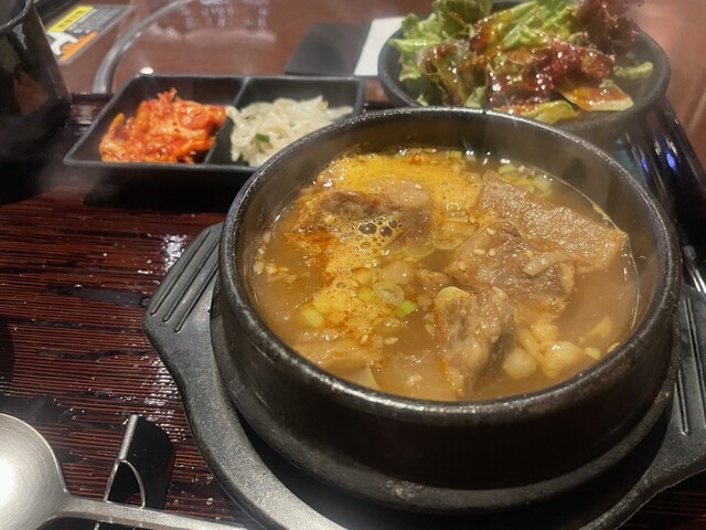 サラダは辛めの焼き肉のタレみたいなドレッシングかかってる。