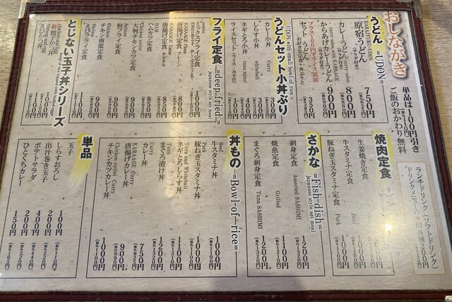 店内のお品書きはどれも安くてびっくりするものばかり。原宿なのにすごい笑