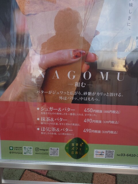 冬になり、白玉ぜんざい、クレープが仲間入り!クレープは、シンプルに、『シュガー&バター、抹茶&バター、ほうじ茶&バター』の3種!