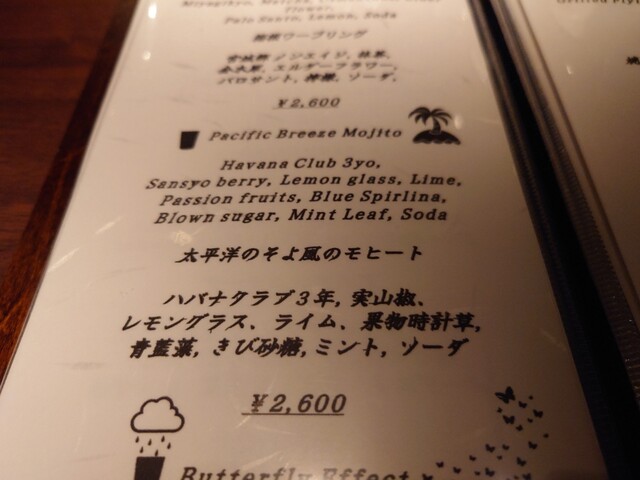 飲み物は、別格に美味しい♪ソフトドリンクはないけども、ノンアルコールカクテルに置き換えしてくれるので、メニューも充実。メニューにないカクテルでも、その場で創造し、提供してくれちゃいます(*^^*)その場の雰囲気で、彼女にカッコいいとこも、魅せれますよ♡