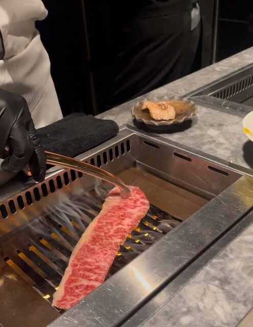 テーブルのサイドにあるロースターと鉄板で専任の方がフルアテンドで焼き上げてくれる贅沢な空間。「但馬牛」「但馬玄」を堪能できる「宙」コースをペアリング付きでいただきました!