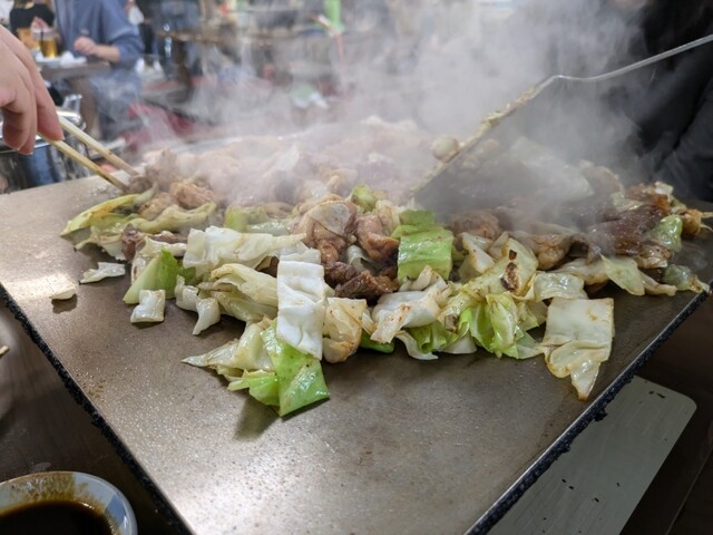 お店の席は、焼き肉の網の席、味噌焼きうどんの席と分かれてるいて、比較的、焼き肉の網席は空いていますが、今回は、味噌焼きうどんを選択したので、しばし待ちました、