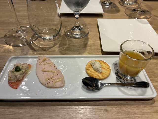 プレミアムの楽しみ方を教えていただいてから、まずはビール、お仲間は梨のスパークリングで喉を潤してから、冷えている日本酒へ。