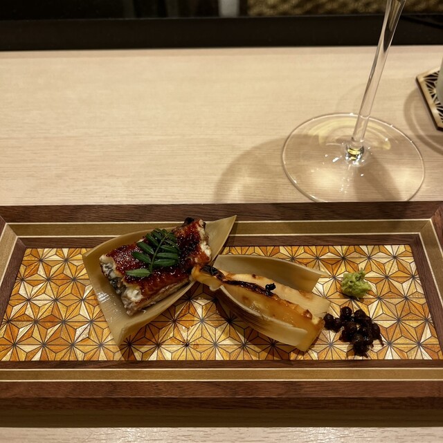 鰻と筍に白ワインを合わせ、このマリアージュがもうたまらない。