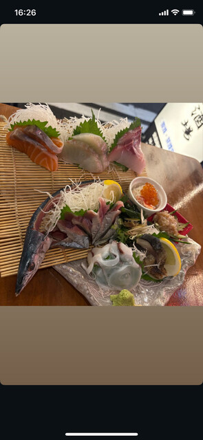 そして、お刺身3点盛りは4点盛り(ブリ、炙りシメサバ、スズキ、サーモン)で出てきて驚きました。どれも新鮮で臭みもなく美味しかったです。